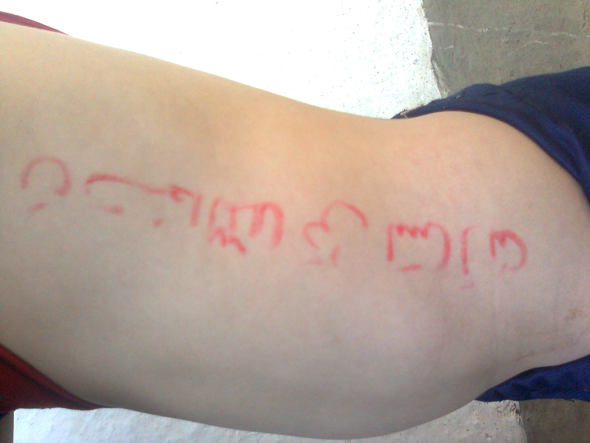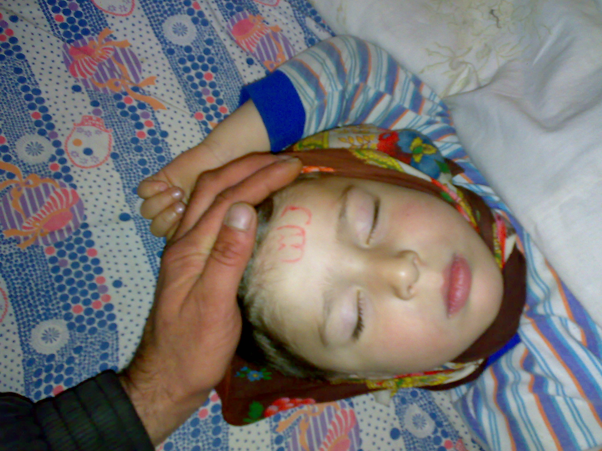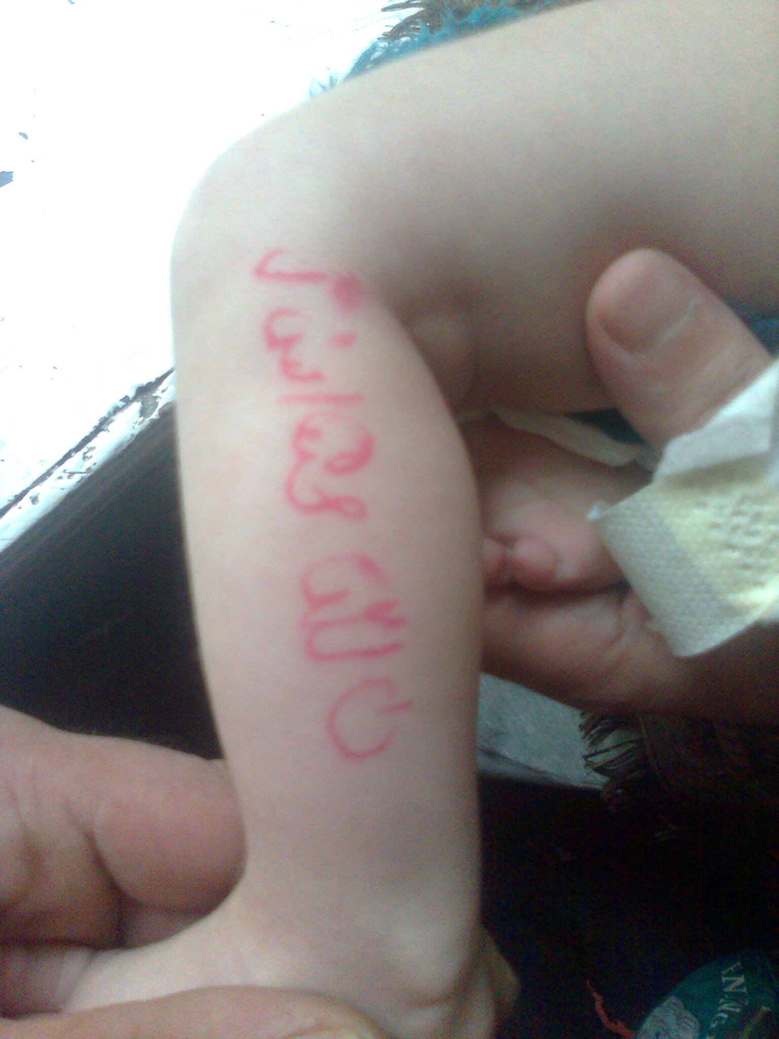 Многие не в курсе того, что это был не единичный случай в Дагестане. Таких случаев с появлением надписей на теле детей и взрослых было десятки. И особенно хочу выделить еще один случай, который подобен кизлярскому. И в том и в этом случае надписи выходили и у матерей и их обоих детей – вначале у мальчиков, а затем и новорождённых девочек. Ровно год назад я посетил семью Абдуллаевых в селении Хапиль Табасаранского района, когда услышал, что в их семье растёт ребёнок, у которого также проявляются надписи на теле, и я решил срочно выехать и убедиться в этом. И во время этого визита я также сумел сделать несколько снимков. Родители ребёнка считали необязательным показывать всем этот случай, так как, было известно, как реагировали СМИ и многие люди на ребёнка из Кизляря, в чудесном проявлении надписей, которого обвиняли родителей мальчика.