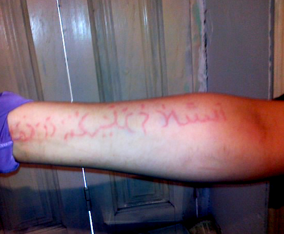 На руке выходили цитаты следующего содержания - «Выбирайте исламскую дорогу, не выбирайте дорогу неверных», «Аллах указывающий истину», «Аллах Оживляющий» и т.д. Полностью из сур со всеми огласовками и без ошибок вышла сура «Кафирун» («Неверные»), а также другие краткие аяты Корана указывающие на Единобожие.