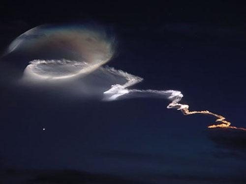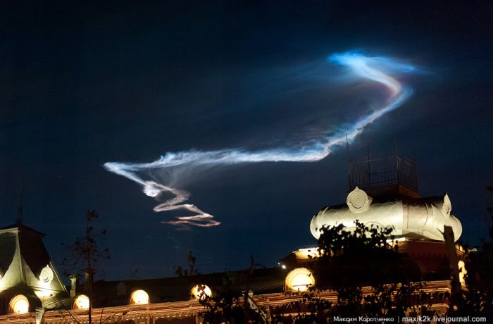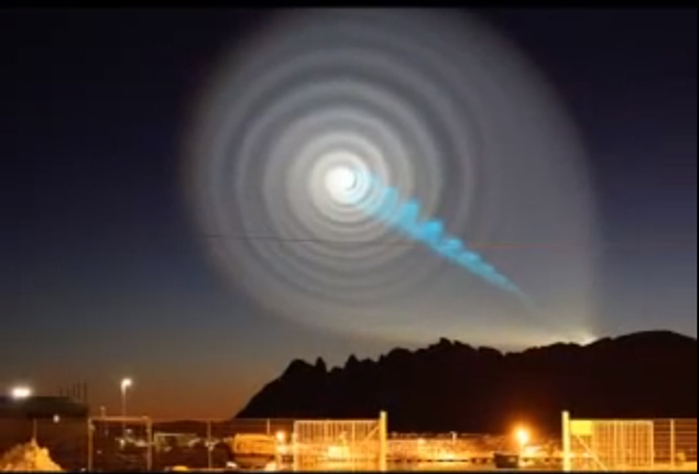 Вечером 7 июня в темных небесах Дагестана и некоторых других регионов России и Ближнего Востока творилось нечто странное. Жители Палестины, Израиля, Ливана, Иордании, Египта, других близлежащих территорий, а также Армении, Турции и Кипра увидели на большой высоте сначала яркую вспышку, потом облако, от которого в сторону отходил светящийся конус. Потом возникла огненная, похожая на галактику, спираль с яркой точкой в центре. Вращаясь, она постепенно исчезла из поля зрения. Словно бы растворилась в черноте неба.