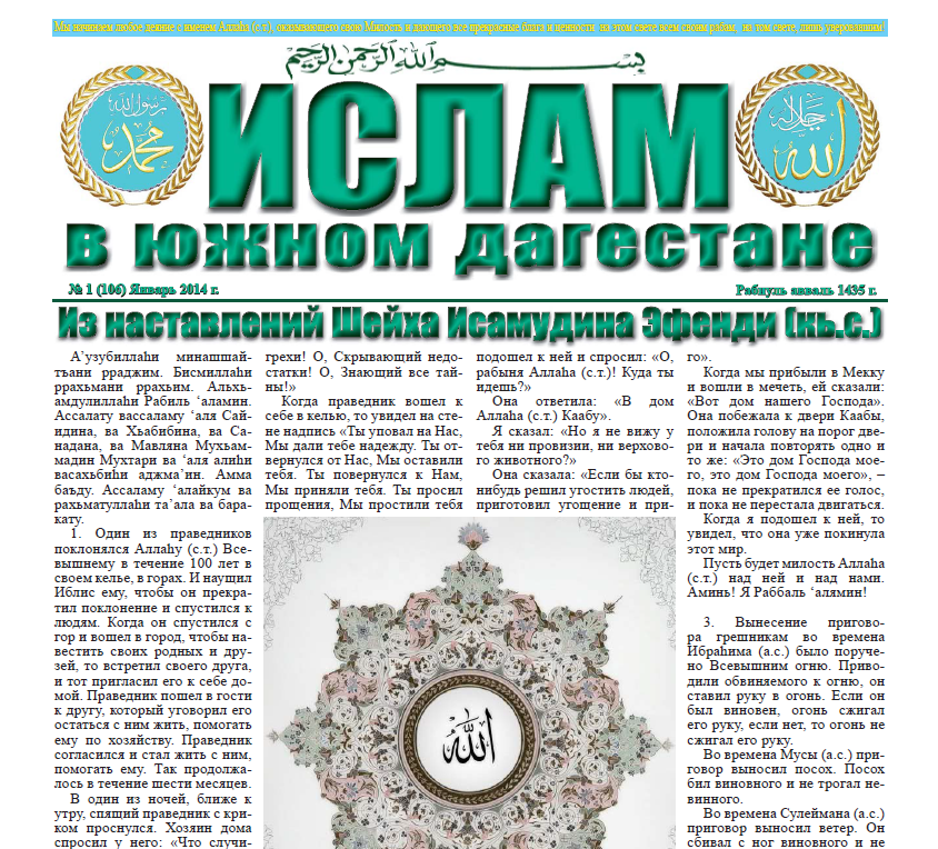 Ислам в Южном Дагестане № 1 (106) Январь 2014