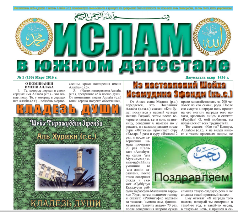 Ислам в Южном Дагестане № 1 (130) Март 2016
