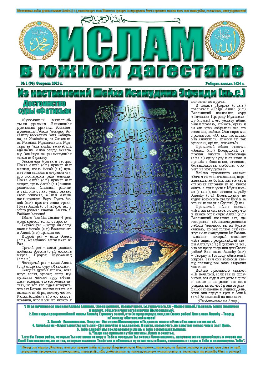 Ислам в Южном Дагестане № 1 (96) Февраль 2013