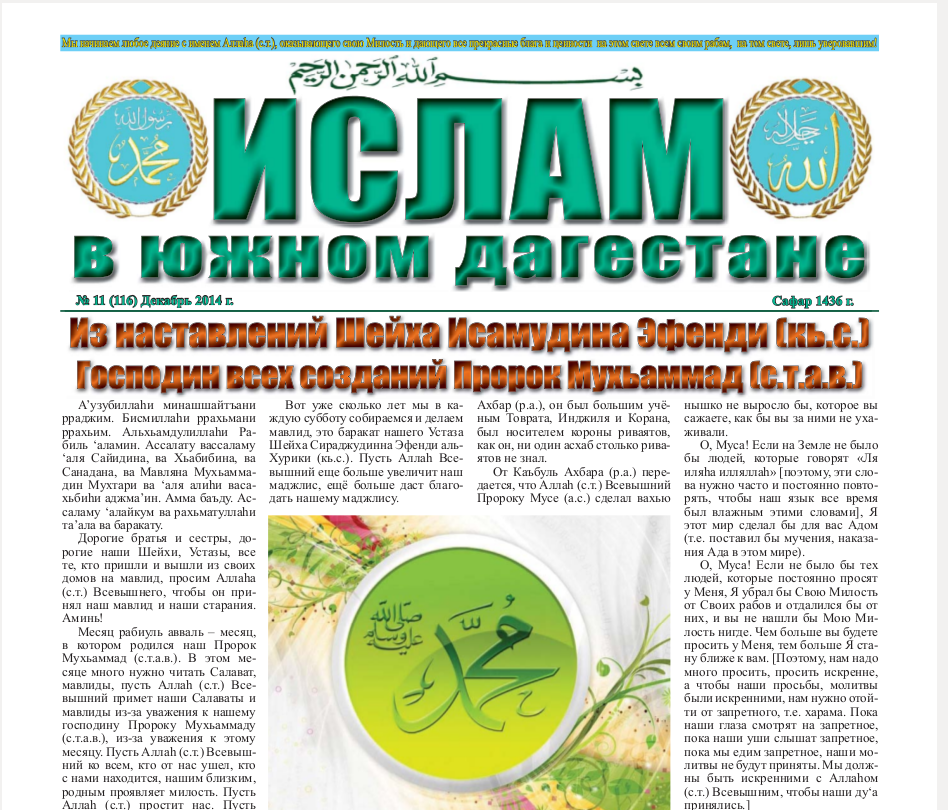 Ислам в Южном Дагестане № 11 (116) Декабрь 2014 (скачать)