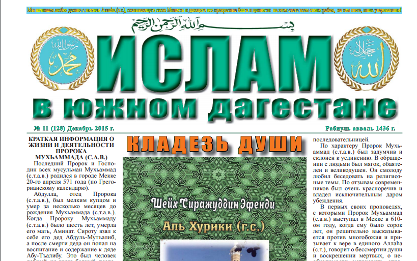 Ислам в Южном Дагестане № 11 (128) Декабрь 2015