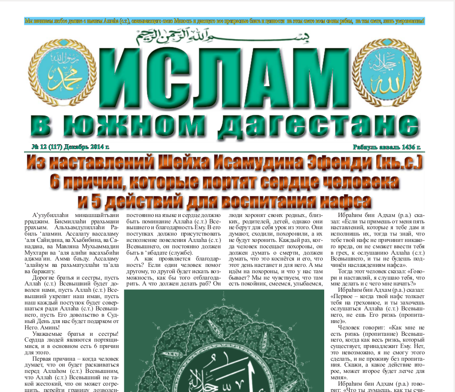 Ислам в Южном Дагестане № 12 (117) Декабрь 2014 (скачать)