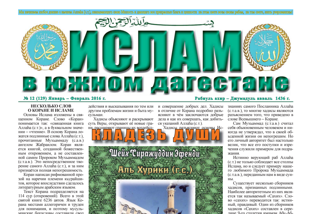 Ислам в Южном Дагестане № 12 (129) Январь-Февраль 2016 (скачать)