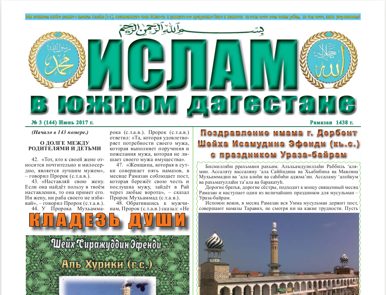 Ислам в Южном Дагестане № 3 (144) Июнь 2017
