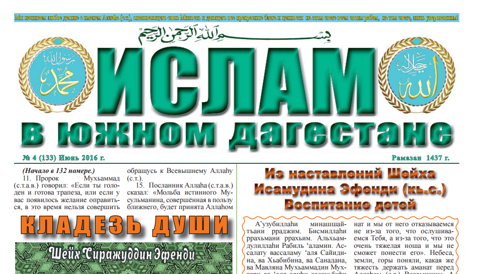 Ислам в Южном Дагестане № 4 (133) Июнь 2016 (скачать)