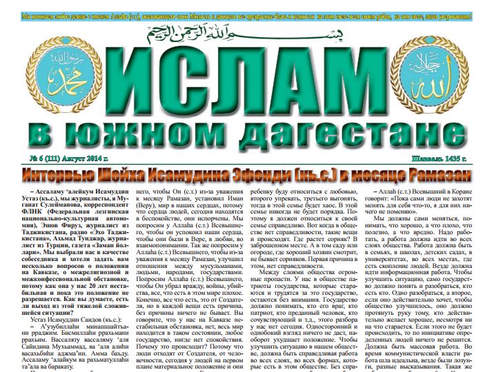 Ислам в Южном Дагестане №6 (111) Август 2014 (скачать)