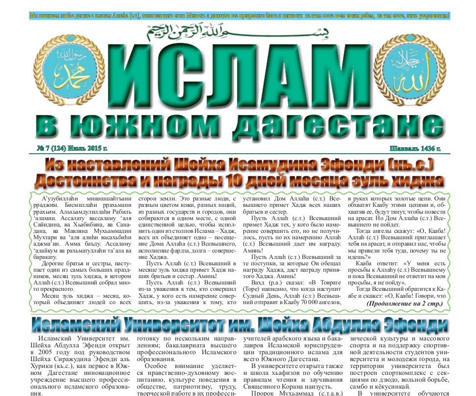 Ислам в Южном Дагестане № 7 (124) Июль 2015