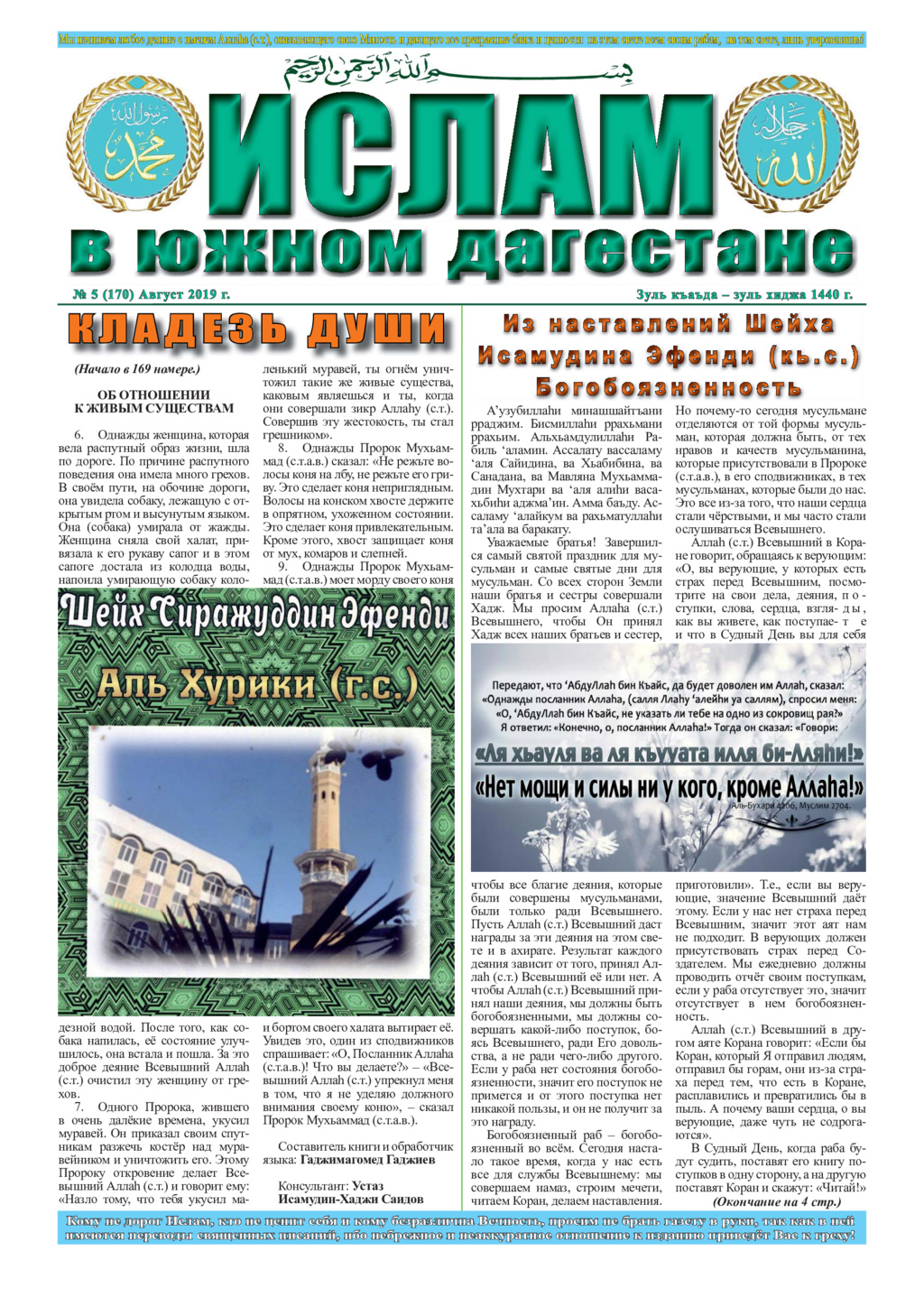 Ислам в Южном Дагестане No 1 (166) Апрель 2019