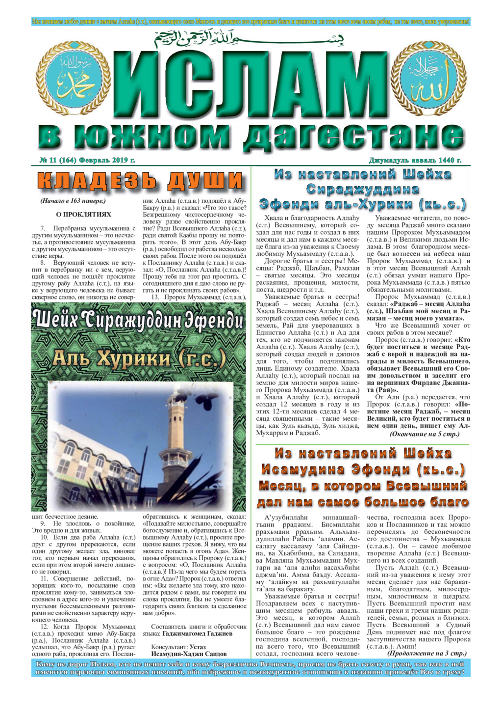 Ислам в Южном Дагестане № 11 (164) Февраль 2019