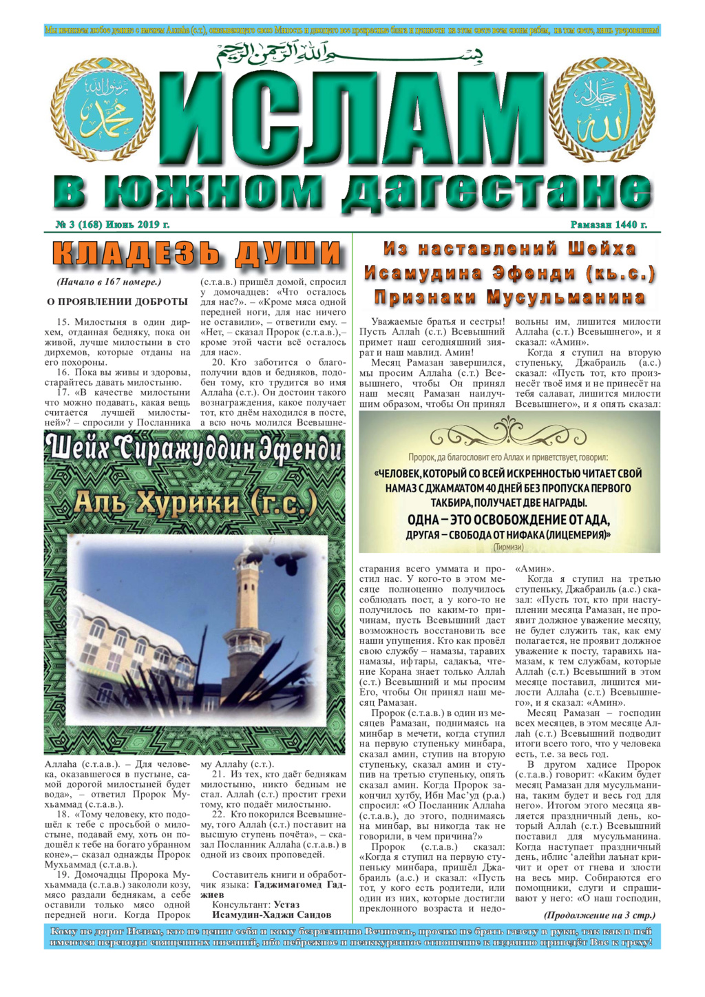 Ислам в Южном Дагестане No 1 (166) Апрель 2019