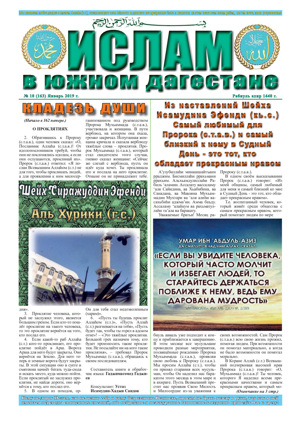 Ислам в Южном Дагестане № 10 (163) Январь 2019