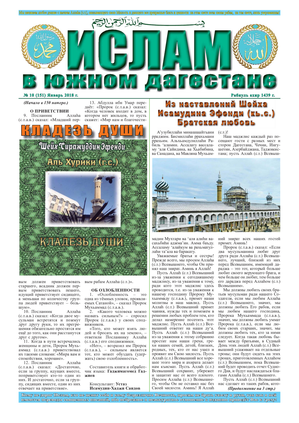 Ислам в Южном Дагестане № 10 (151) Январь 2018