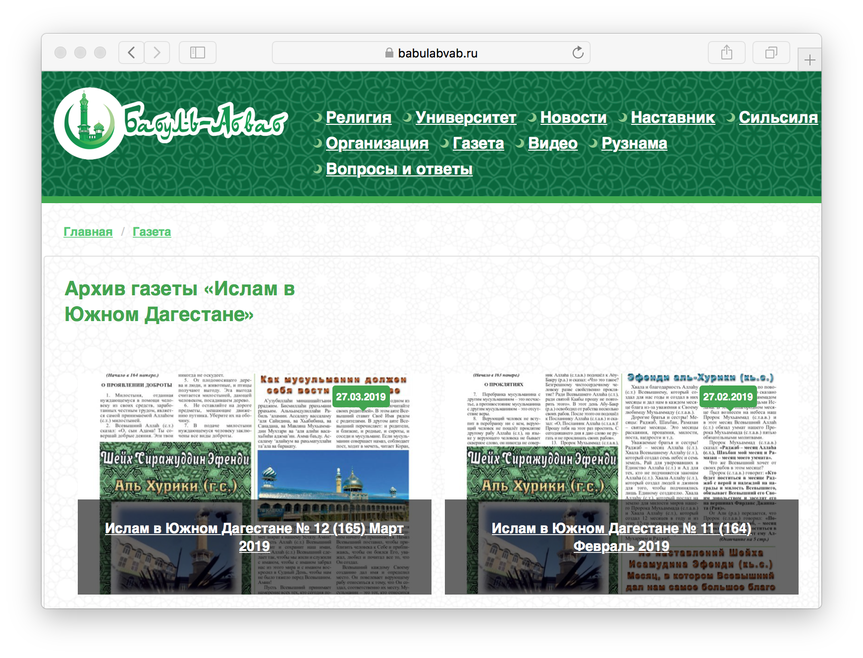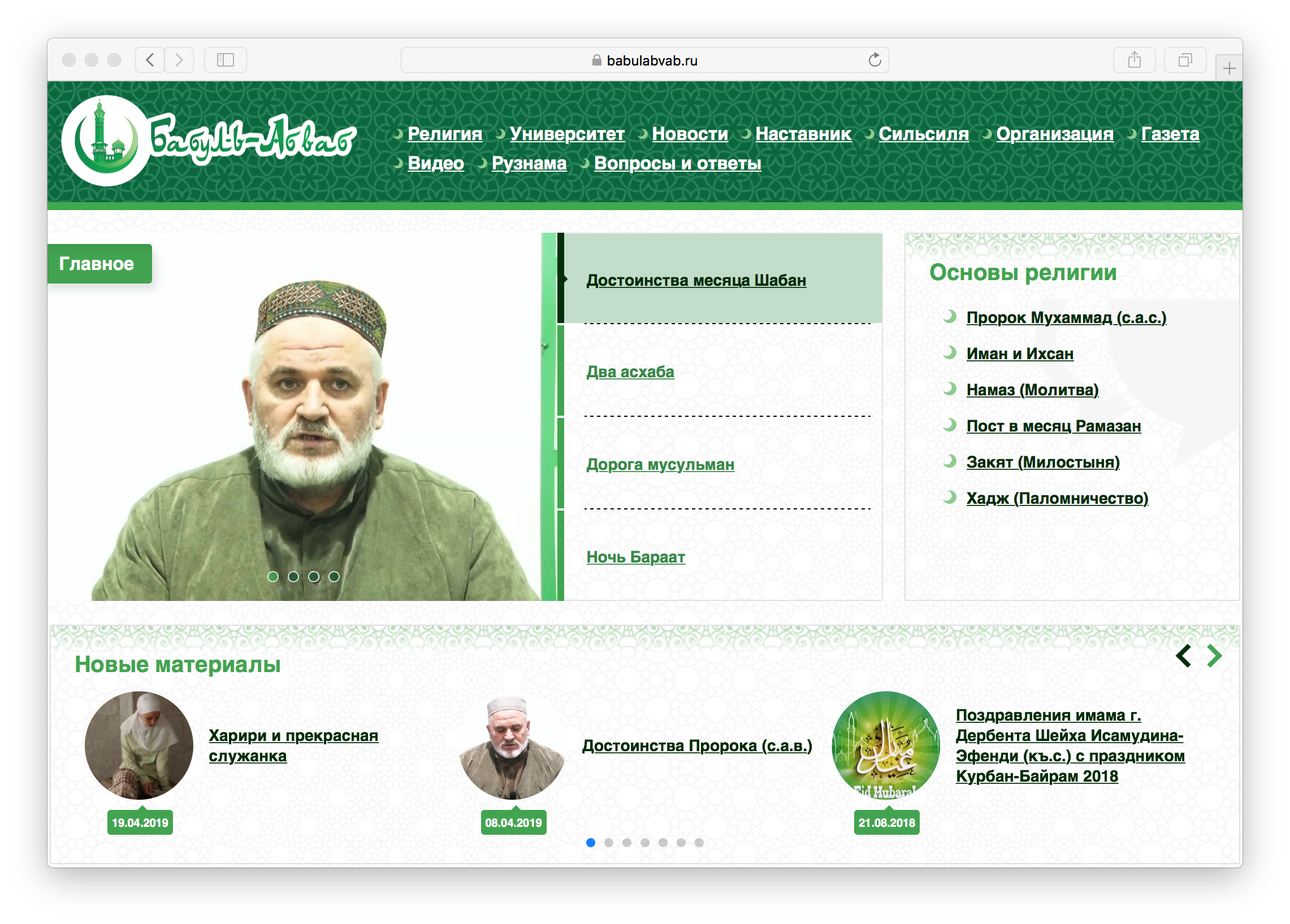 Редакция сайта Исламского просветительского центра «Бабуль Абваб», совместно с редакторами газеты «Ислам в Южном Дагестане», а также с коллективом Исламского университета им. Шейха Абдулла-Афанди в преддверии наступающего священного месяца Рамазан, по благословению имама г. Дербент, Шейха Исамудина Эфенди, выпустили первое большое обновление интернет сайта babulabvab.ru.