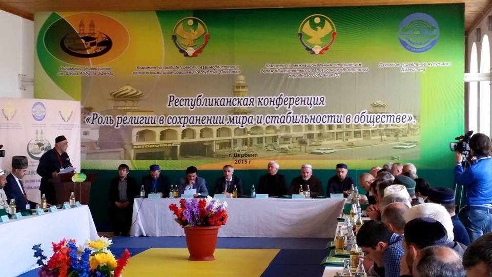 Сегодня в Дербенте в стенах Исламского университета имени Шейха Абдуллы Эфенди прошла республиканская конференция на тему «Роль религии в сохранении мира и стабильности в обществе». Организаторами мероприятия выступили Комитет по свободе совести и взаимодействию с религиозными организациями РД, Комитет Народного Собрания РД по межнациональным отношениям, делам общественных и религиозных объединений, Муфтият Республики Дагестан и Исламский университет имени Шейха Абдуллы Эфенди.