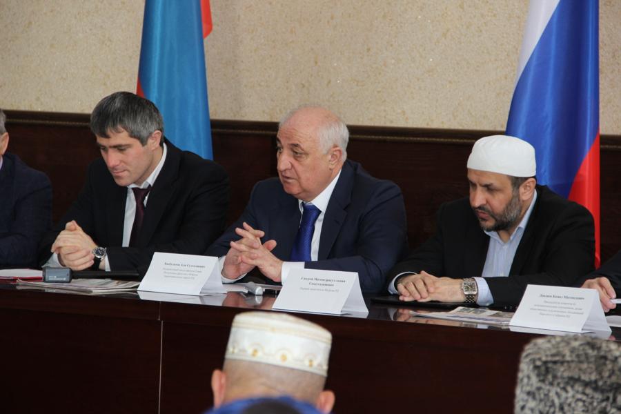 Председатель Комитета Народного Собрания РД по межнациональным отношениям, делам общественных и религиозных объединений Камил Давдиев в своем выступлении главный акцент сделал на роль духовенства в духовно-нравственном и патриотическом воспитании молодежи, преодолении противоречий и разногласий среди мусульманской уммы республики, профилактике идеологии экстремизма и терроризма. Осудив элистинский инцидент с осквернением религиозных чувств верующих иной конфессии, он высказал мысль, что только совместная работа органов власти, духовенства общественных организаций в области религиозного просвещения, гражданского и правового воспитания подрастающего поколения позволит избежать впредь подобных ситуаций и укрепит мир и единство среди представителей всех конфессий страны.
